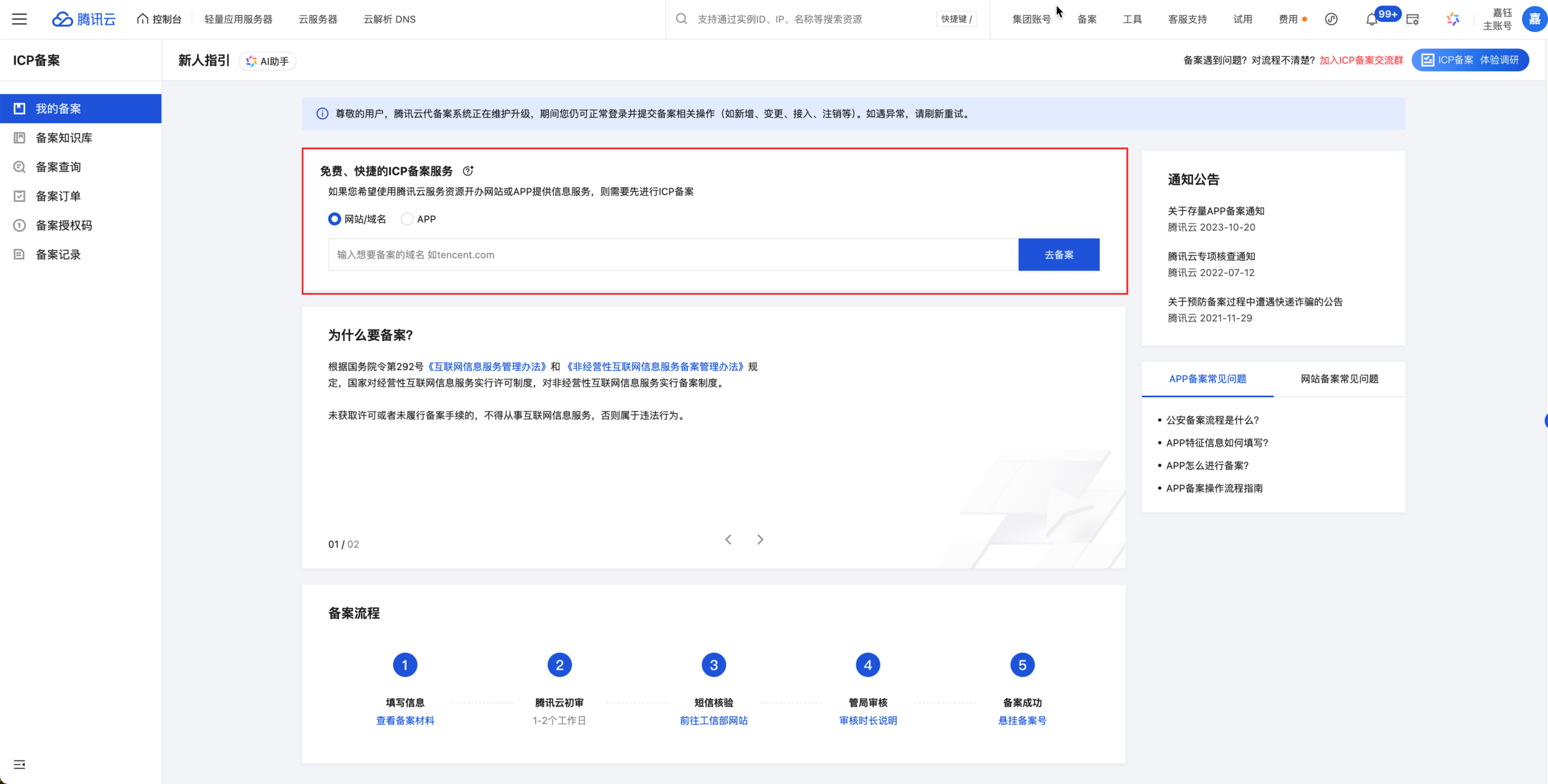 域名接入腾讯云备案